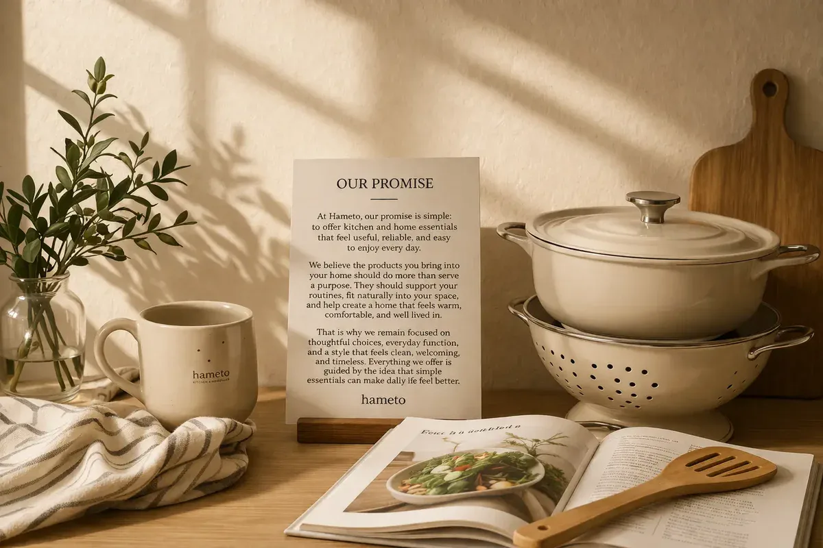 At Hameto, our promise is simple: to offer kitchen and home essentials that feel useful, reliable, and easy to enjoy every day.