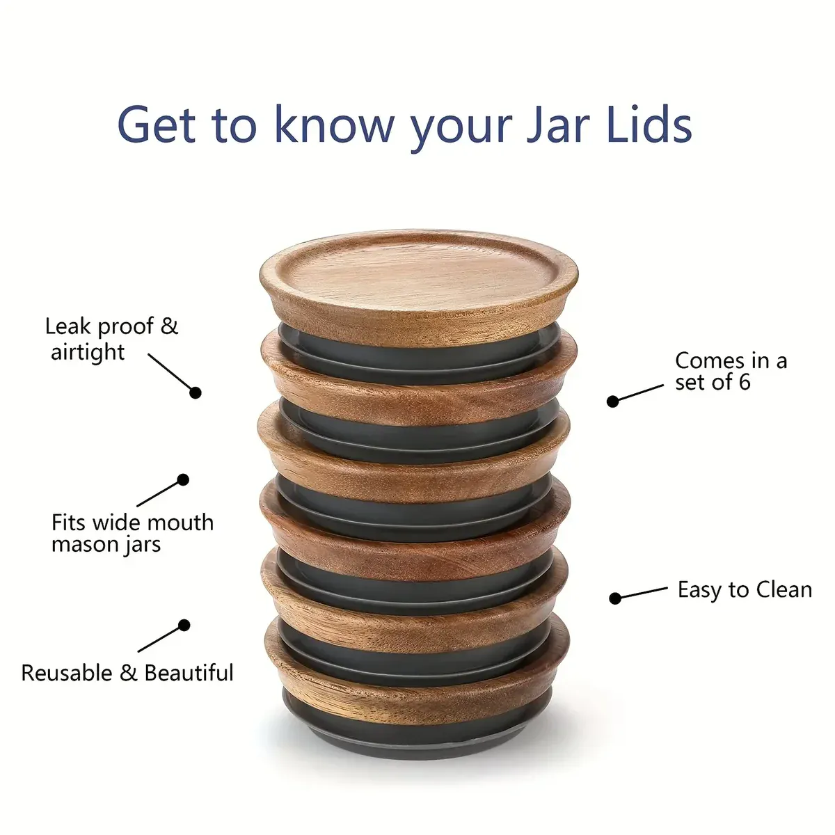6-Piece Wooden Storage Lids for Sealing Regular Mouth Jars – description image 1