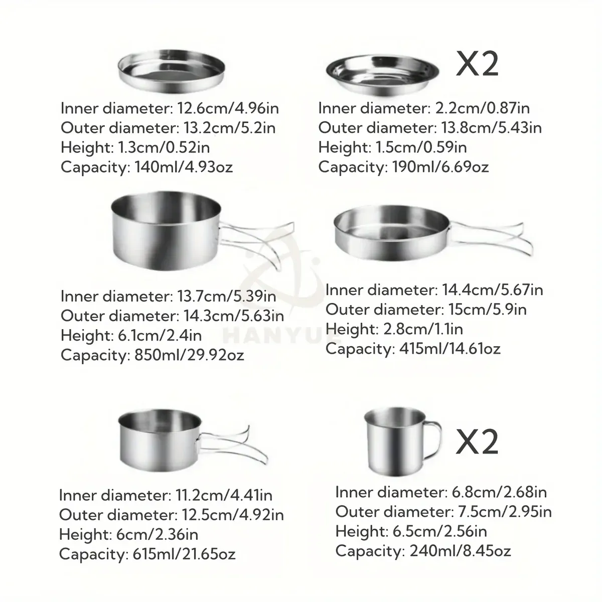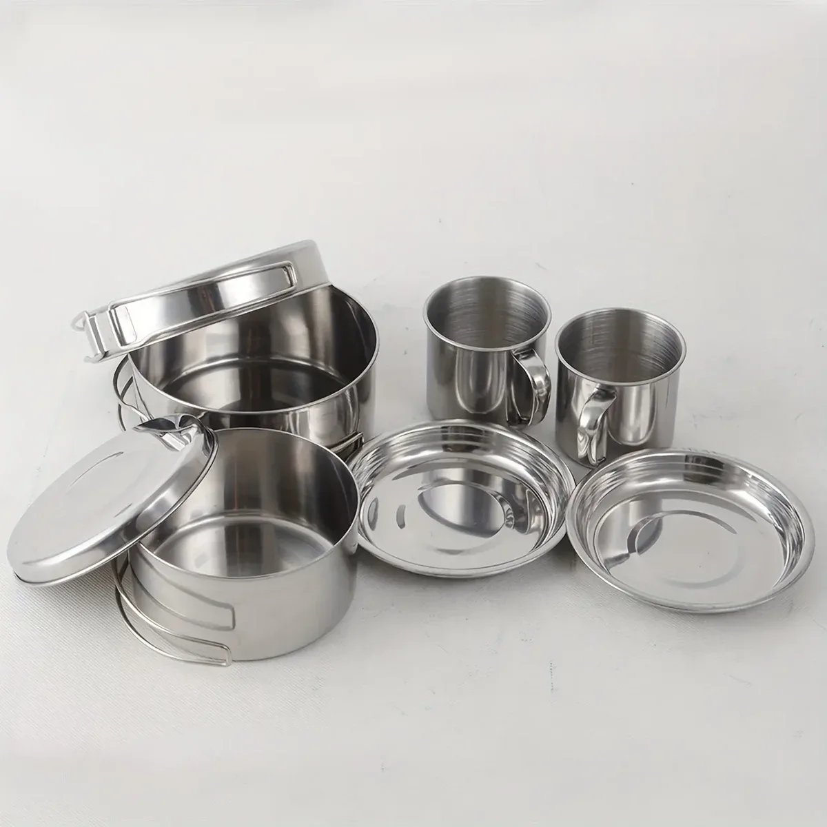 This stainless steel cookware system is designed for outdoor cooking and boiling tasks during camping and travel. The set includes multiple components that nest together for organized storage and transport. A metal construction supports repeated handling and routine cleaning. The compact form factor helps reduce space in packs and storage areas.